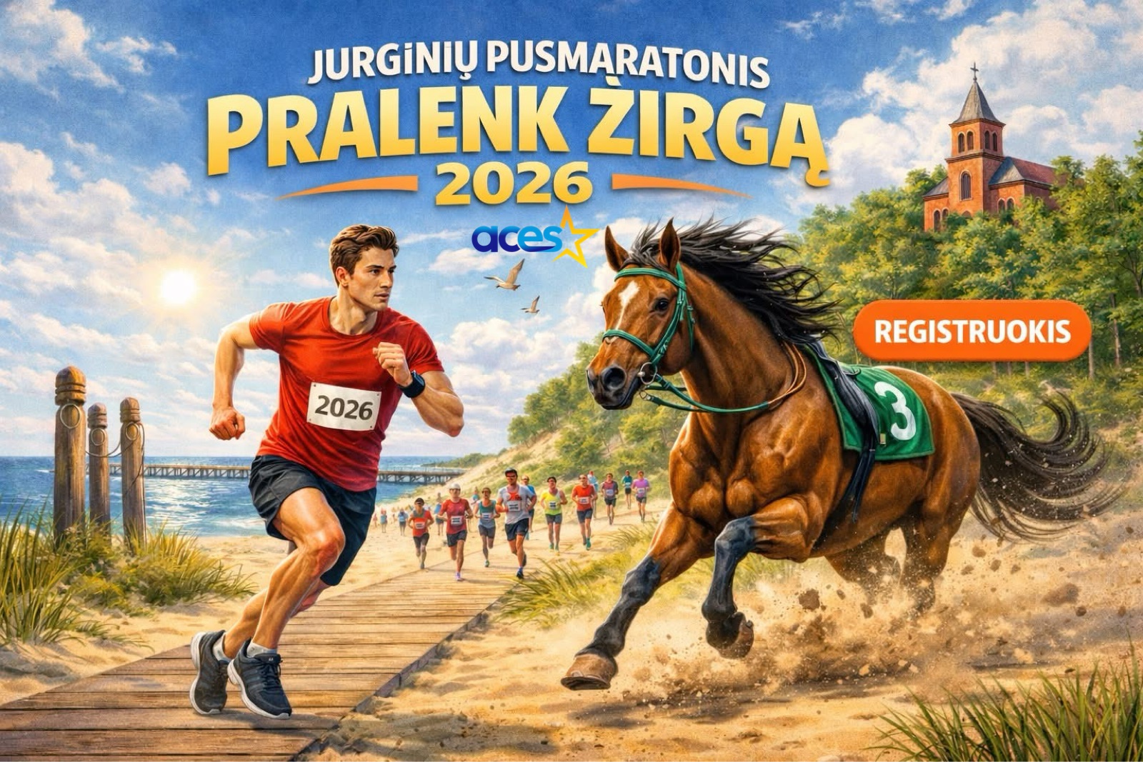Ar esi greitesnis už žirgą? Išbandyk save viename įspūdingiausių pavasario bėgimų pajūryje!