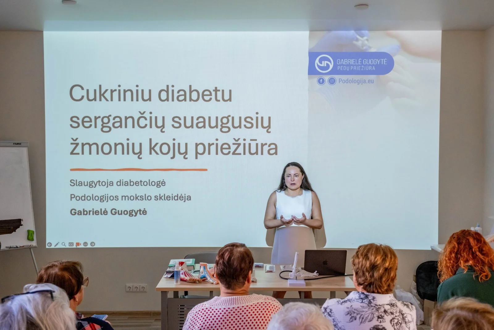 Rugpjūčio pirmą dieną Kretingos ligoninėje vykusioje paskaitoje – „Cukriniu diabetu sergančių suaugusių žmonių kojų priežiūra” apie tai, kaip tinkamai prižiūrėti pėdas kalbėjo podologė Gabrielė Guogytė, Klubo „Diabeto IQ“ vadovė Dovilė Byčienė, ligoninės diabetinės pėdos slaugytoja Lijana Sendriutė.